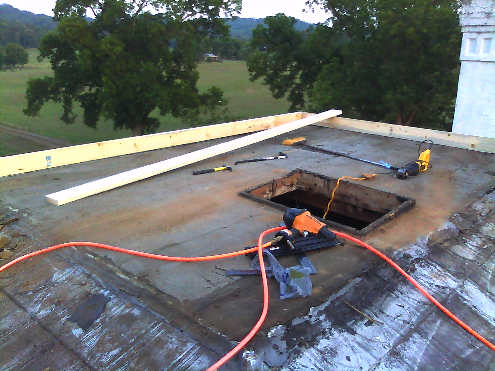 I knew eventually I was going to have to get a new roof and fix the box gutters, but it wasn’t a priority until the tornado came through in the spring of this year. Though it didn’t do any heavy damage, it did take off a few dozen shingles from both the first and second floor roofs, as well as rip out the rubber lining of the box gutters on the south side of the house. So needless to say, starting on the top became a priority.